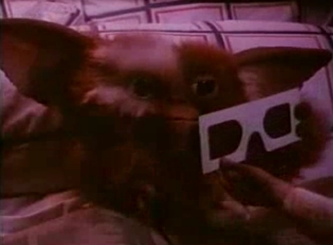 One of our readers shared a Korean Gremlins trailer, and I caught a glimpse of Billy handing gizmo the 3D glasses before offering him chicken. This was not in the film, and it shows how large the Gizmo puppet for close ups is in comparison to an adult hand. Here is a screenshot of the scene (click to enlarge)