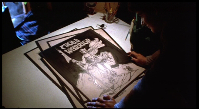 This was meant to be included after Billy gets home from work but before his father introduces Gizmo to the family. Simply Billy sitting at his desk, seemingly about to start working on some of his art. It shows the title “Troll Warrior” which is the name of what his current art project is. (it is unknown if it was for personal hobbies or if he was planning on submitting it to a publisher.) As with most scenes that did not feature the creatures from the film, this was likely cut due to time constraints.