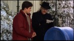 This scene seems to have been meant for after gizmo is injured by falling off Billy’s desk, it is the next day, and billy is on his way to work. He stops and speaks with Father Bartlett about sending out last minute Christmas Cards. This scene also sets up the mailbox attack later in the film. Unfortunately there is no reference to how Father Bartlett at first thought that the Mailbox spitting cards back at him was probably a “Hidden Camera” prank or something along those lines. This scene again, was most likely cut due to time constraints.